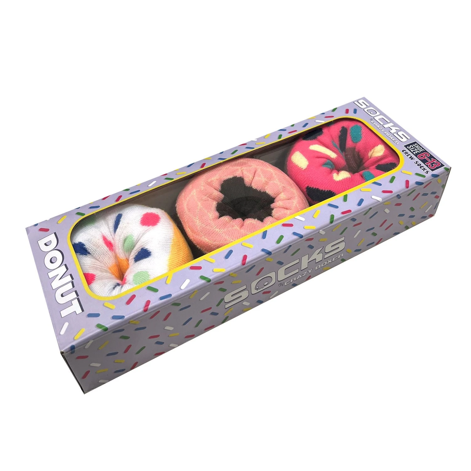 We are so excited to share our new socks By Crazy Boxer Flavored Donuts Crew Socks (3-Pairs, Donut Box). We’ve outdone ourselves this time by adding the most remarkable novelty packaging.